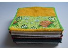 Dětské ručníčky jsou vyrobeny z měkoučkého froté, které má z obou stran smyčky a tudíž je dosti savé. Tyto ručníčky si vaše děti určitě zamilují. Ručníček má poutko na pohodlné zavěšení na háček. Na ručníčku je našitý obrázek a je olemován bavlněným proužkem, aby pro dětičky byl zajímavý a nezaměnitelný. Ručníčky je možné využít jak doma, tak do školky, školy, na cesty, ale také třeba k babičce. Ručníčky jsou vyrobené z materiálů, které jsou vhodné i pro dětičky do tří let.