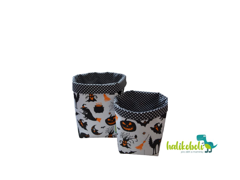 Halloweenské textilní košíčky můžete využít jako dekoraci do pokoje, ale jsou i praktickým pomocníkem do domácnosti. V domácnosti mají široké využití. Můžete do nich ukládat plenky, vlhčené ubrousky, krémy pro miminko, hřebínek, teploměr a jiné drobnosti pro miminko, můžou sloužit na kosmetiku, můžete do nich ukládat klíče, papírové kapesníčky, pro děti jsou výborné na uložení hraček nebo uložení drobného prádla. Výšku košíčků si navíc můžete i regulovat sami dle ohnutí.